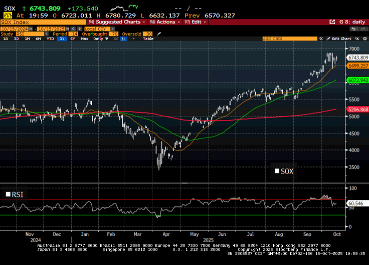 A onor del vero, bisogna rilevare che il settore semiconduttori, principale pilastro del rally dell’AI, oggi non da alcun segnale di debolezza, con il Philadelphia Semiconductor in progresso di un 2,5% mentre scrivo. Il grafico però mostra un iniziale consolidamento con aumento della volatilità.