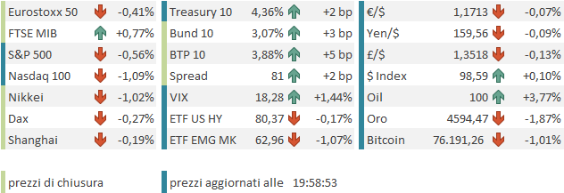 A metà giornata peraltro il WTI ha superato 100$, e il brent i 111$, e così l’azionario europeo si è mangiato i magri guadagni, mentre i rendimenti sono ulteriormente saliti.
