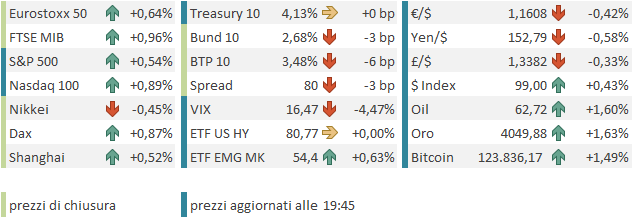 Le piazze europee si giovano del sentiment, e chiudono con buoni progressi, trainate da industrial e financials, ovvero i settori ciclici, a indicare un certo ottimismo macroeconomico, aiutato magari dal calo dei tassi, significativo oggi e dal calo dell’€ che oggi sta marcando i minimi da fine agosto.