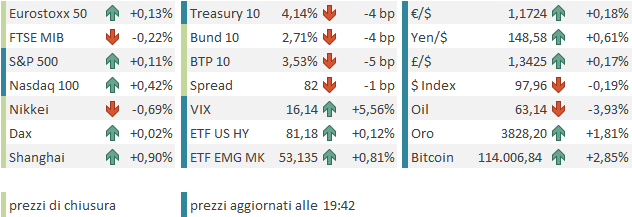 Naturalmente questi numeri hanno spinto al ribasso i rendimenti, aiutati dal calo dell’oil, favorito da ulteriori news che l’OPEC + vuole aumentare la produzione, ed eventualmente dalle dichiarazioni di Trump sulla possibilità di un accordo Hamas Israele.