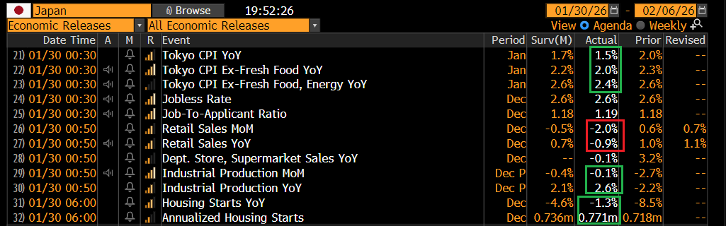 il Nikkei avrà eventualmente ottenuto supporto dal CPI di Tokyo, antipasto del CPI nazionale di gennaio, che è uscito in calo ben superiore alle attese, cosa che leva un po’ di pressione alla Bank of Japan. Infatti lo Yen è tornato a calare oggi cosa che ha attutito l’effetto delle pressioni rivenienti dal sentiment internazionale.