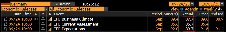 La seduta europea è giustamente iniziata con un tono incerto, gli indici leggermente sotto la pari. Poco mossi i rendimenti e l’€ leggermente in calo. Alle 10 l’IFO tedesco ha totalmente contraddetto sia i PMI tedeschi di ieri che il consenso che vedeva un lieve miglioramento, cedendo oltre un ponto principalmente per il ritorno a calare delle expectations.