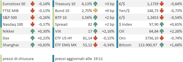 Un altro motivo di moderata tensione è l’incombere della deadline per lo shutdown governativo (1 ottobre). Trump ha dichiarato che, viste le richieste dei democratici al Senato (dove occorre una maggioranza di 60 seggi e non di 50+1 per evitare il filibuster) non ha nemmeno intenzione di incontrarli. Sul bookmaker  Polymarket la probabilità di uno shutdown è salita dal 69% di ieri al 76%. Anche qui, direi che la motivazione è tenue. Ma è anche vero che la discesa è moderata. Resto dell’idea che sono prese di beneficio su alcuni winners e sul tech. Vedremo se la cosa prende un po’ di momentum o il calo resta isolato, come spesso di recente.