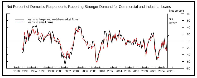 Ieri poi è uscita la Senior Loan Officer Opinion Survey Fed di gennaio. Per quanto riguarda i prestiti alle imprese, si segnala, nel complesso, un inasprimento dei lending standard per i commercial & industrial loans alle aziende di tutte le dimensioni. Però si riporta anche una domanda più forte di prestiti C&I da parte delle imprese di grandi dimensioni e del segmento mid-market, e una domanda sostanzialmente invariata, in termini netti, da parte delle piccole imprese. Questo è coerente con quadro di economia in accelerazione.