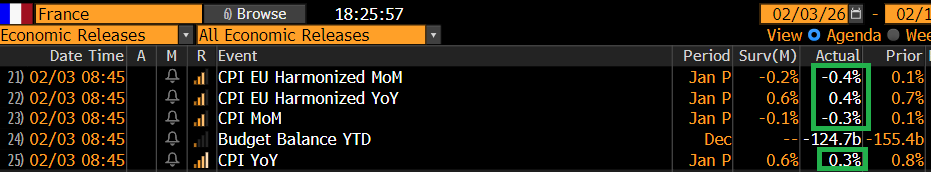 Con queste premesse la seduta europea è partita bene, con i principali indici in progresso e l’Eurostoxx 50 a nuovi massimi nel durante. I rendimenti sono coerentemente ancora saliti. Di primo mattino era anche uscita l’inflazione francese preliminare di gennaio sotto attese. Questo report abbassa un po’ le attese del mercato per quello aggregato EU in pubblicazione domani insieme a quello italiano.