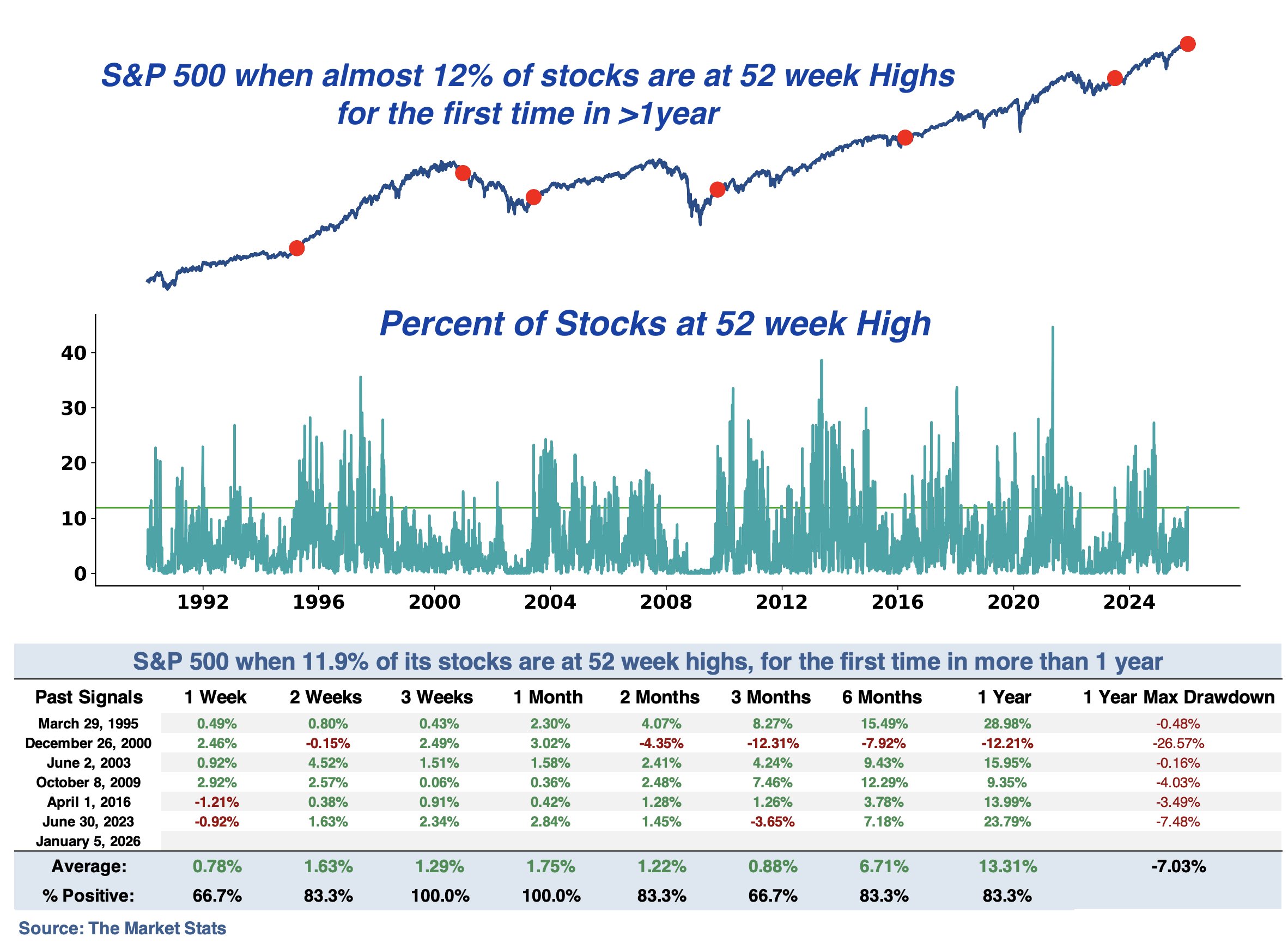 Dopo la chiusura Wall Street è tornata più o meno in pari. Vedremo dove sarà la chiusura. Nel frattempo, grazie a The market Stats, possiamo aggiungere una statistica alle evidenze che depongono bene per Wall Street all’inizio del 2026.