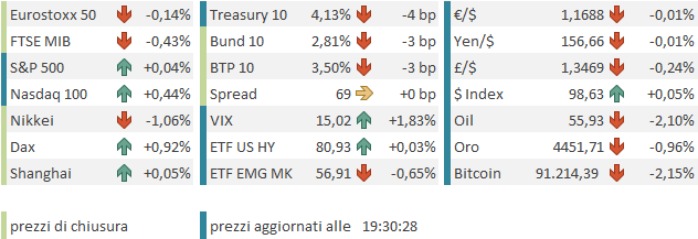 L’impatto di questa considerevole incertezza si è visto sui preziosi, che sono tornati sui massimi, e sul petrolio, in calo. Se i rendimenti forse hanno trovato un ulteriore fattore di moderata compressione dalla domanda di safe heaven, l’azionario, come di recente, ha per ora ignorato abbastanza la cosa.