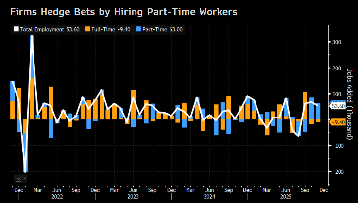 Questo moderato afflosciamento ha pesato in chiusura sull’azionario continentale, che vede i suoi progressi ridotti a un livello marginale, con l’Eurostoxx 50 che prende lo 0.1% a fronte dello 0.5% che guadagnava a pomeriggio inoltrato. Resta comunque un’altra seduta positiva, l’ottava su 10 (e gli unici 2 cali sono -0.1% e -0.04%). I rendimenti sono moderatamente saliti, in simpatia con quelli USA, che sembrano un po’ contagiati dal violento rialzo di quelli canadesi. Ciò a causa di un report del mercato del lavoro di novembre in Canada che vede 53.000 posti creati vs attese di 2.500 di calo, e la disoccupazione in forte calo dal 7% al 6.5%. Il 2 anni canadese sale di 17 bps a 2.63%e il 10 anni di 15 a 3.42%. La curva è passata da scontare cali a scontare rialzi nel 2026. Io però diffido degli statistici canadesi. Basta dare un occhiata alla serie per farsi un idea. Il 2025 ha visto forti oscillazioni.