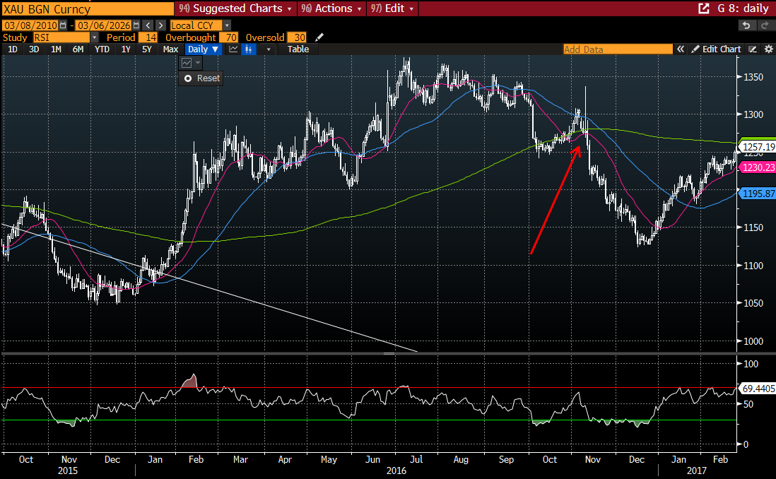 Sono andato a guardare che successe l’ultima volta che si vide un uscita del genere, nel novembre 2016. L’oro perse circa un 10% nelle 6 settimane successive. Ovviamente con una sola osservazione, questa non è una statistica di valore. Ma è un segnale da tenere presente, a mio parere.