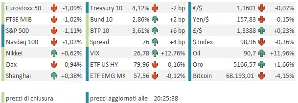 A un ora e mezzo dalla chiusura Wall Street è ancora ben negativa, anche se ad una certa distanza dai minimi del pomeriggio. Vediamo se il recupero avviene anche stasera. Dubito che il week end porterà modifiche sostanziali al quadro, ma con Trump non si può mai dire. Intanto al Congresso i Repubblicani si apprestano ad affrontare pubblicamente i costi dell’operazione. Politico parla di 2 miliardi al giorno. un altro tema che potrebbe portare Trump ad un TACO in tempi non troppo lunghi.