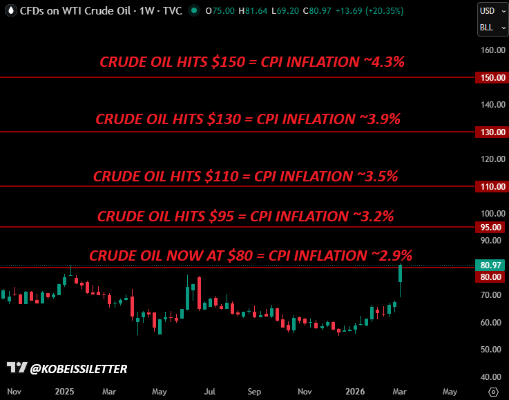 Ancora in rialzo i rendimenti, col 10 anni Treasury + 4 bps al 4,14%. Il motore di tutto ciò è la prosecuzione della guerra Israele-USA vs Iran, con la tattica del secondo di bombardare impianti e facilities in tutti i paesi del golfo (ieri qualcosa è atterrato persino in Azerbaijan), e l’impatto sul petrolio. Ieri il WTI ha preso un 6% abbondante, e ha chiuso opra la soglia di 80$, superando i picchi del 2025 (e oggi non va affatto meglio).