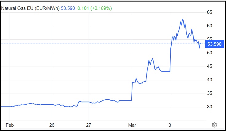 E l’Eurozona si è svegliata con un gas TTF che, dopo aver chiuso in rialzo ieri del 35%, stamattina alle 8 italiane faceva un altro +28%. Inutile dire che le piazze europee hanno aperto con cali vistosi e hanno accumulato perdite per tutta la mattina, con il gas che si portava sul +50% in tarda mattinata, prima di iniziare a ripiegare.