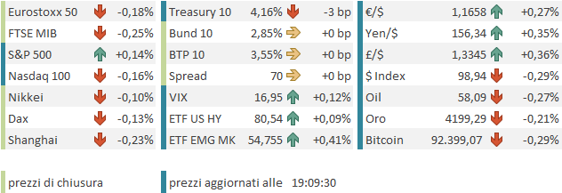 Anche l’employment cost index USA del terzo trimestre 2025, pubblicato nel primo pomeriggio, non poteva incidere più di tanto. Il dato è uscito sotto attese a +0.8% da +0.9% e vs attese per invariato a +0.9%. Un altro mini semaforo verde per un easing Fed, che forse non ne ha bisogno.