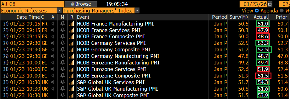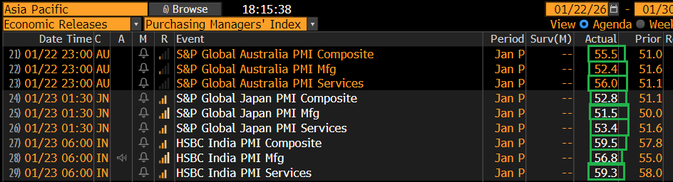 Di scena oggi sul fronte macro c’erano i PMI manifatturieri, servizi e composite preliminari di gennaio, ed in Asia hanno mostrato un balzo dell’attività.