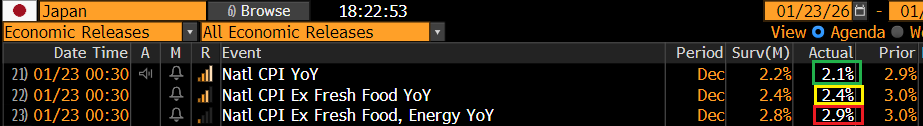 Abbiamo anche avuto dei dati di inflazione “benigni” in Giappone, anche se depurato delle componenti volatili il calo del CPI di dicembre è stato marginale e inferiore alle attese.