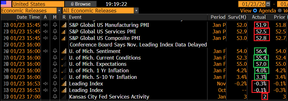 I PMI preliminari di gennaio negli USA hanno marginalmente deluso un consenso che vedeva lievi miglioramenti. Negli Stati uniti questi dati hanno meno rilevanza rispetto ai più noti ISM che però non hanno rilevazione preliminare.