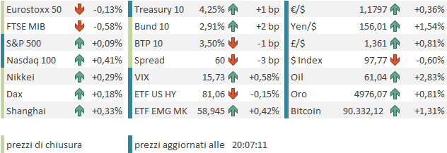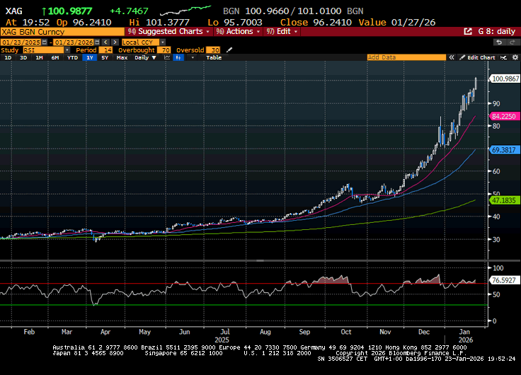 Per l’azionario è stato un moderato fastidio, ma il petrolio è risultato forte per tutto il pomeriggio e i metalli preziosi, safe asset per eccellenza, hanno trovato ulteriore spunto, con l’argento che ha superato quota 100 $ l’oncia (2 mesi fa girava attorno a 50$), e l’oro che sta flirtando con quota 5.000$. Anche i metalli industriali hanno messo a segno performance robustissime.