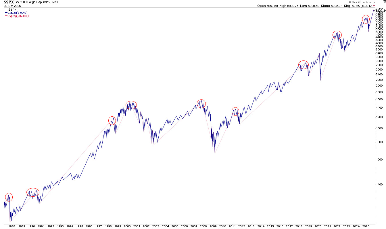 Urban Carmel ha osservato che, normalmente, la prima correzione di quella che poi si rivela una fase di top, viene recuperata e più spesso che no vengono fatti nuovi massimi. E’ l’effetto del momentum.