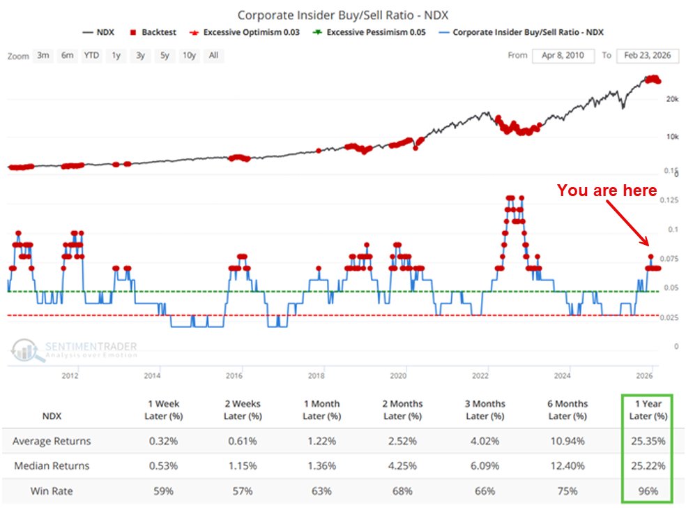 Gli insiders nel frattempo hanno continuato a comprare con forza. Questo è il quadro sulle aziende del Nasdaq 100.