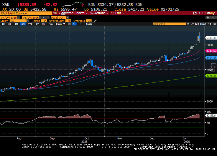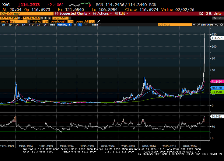 Chiaramente poi l’euforia ha fatto il resto, e dopo aver visto il volo oro e argento chiaramente la gente si butta dove crede ci sia ancora valore. E i metalli preziosi? Si sono affacciati alla seduta europea con progressi di 3/4 punti percentuali, e nuovi massimi (l’argento ha superato 121$ e l’oro ha lambito quota 5600$ l’oncia).