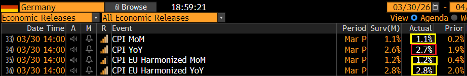 La  seduta europea è  partita  con un tono nervoso che poi però è diventato progressivamente costruttivo. Di primo mattino hanno cominciato a uscire i CPI flash di marzo dei laenders tedeschi, e si è  capito che il  rialzo  sarebbe stato  significativo,  ma in linea con le attese, più o meno.