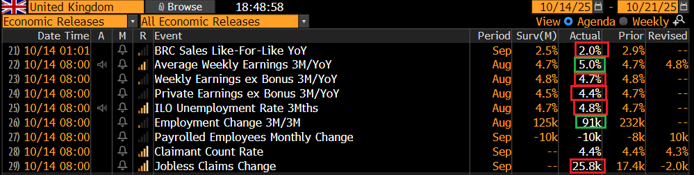 Sul fronte macro, un po’ di dati occupazionali di agosto in UK, al solito contrastanti tra di loro, ma in aggregato deludenti. Inferiori alle attese anche le vendite al dettaglio di settembre, ma in generale non brutte.