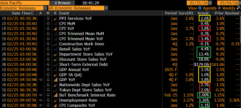 Sul fronte macro, un po’ di dati, i principali dei quali sono PPI in linea in Giappone a gennaio, CPI sopra attese in Australia, retail sales belle forti sia in Corea che in Giappone sempre a gennaio.