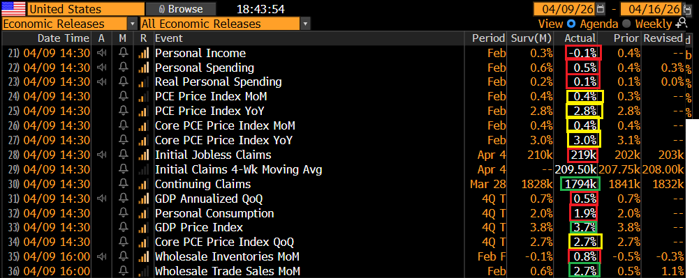 Il PCE deflator di febbraio è uscito in linea con le attese ed è comunque precedente all’impennata dell’oil e come tale poco rilevante.