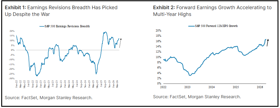 Morgan Stanley ha notato che nonostante la crisi, le earnings revisions hanno ricominciato a migliorare, nel run up verso l’earning season del primo trimestre, che inizia i primi giorni della prossima settimana. Un fenomeno che dimostra che le aziende sono a loro agio con le stime. Probabilmente almeno parte del vigore degli ultimi giorni viene da questa percezione.