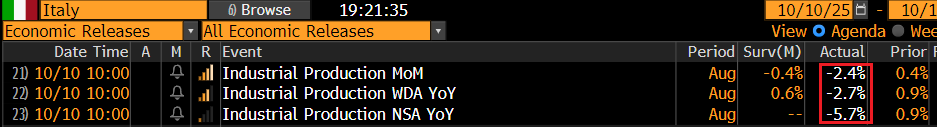 In mattinata l’unico dato previsto è stata la produzione industriale di agosto in Italia, in forte calo e sotto le attese, come quella tedesca giorni fa.