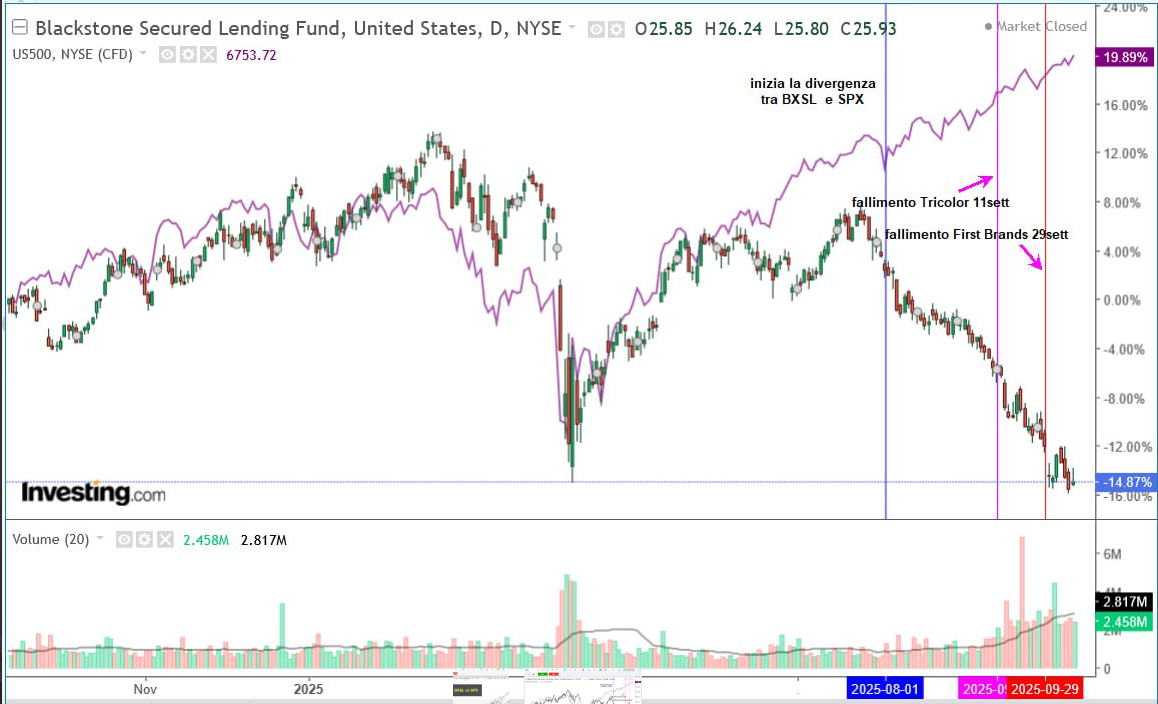 Questo non vuol dire che questi asset non potessero già risentire dell’avvitamento progresivo di questi 2 operatori. Ma si può anche ribaltare il ragionamento, sostenendo che Tricolor e First Brands Group sono le 2 vittime di un generale deterioramento dei fondamentali di credito delle aziende USA che utilizzano prevalentemente forme di finanziamento bancarie o similari.