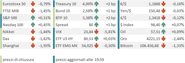 Le piazze europee non si sono fidate del tutto del rimbalzo made in USA, e chiudono con perdite sicuramente inferiori a quelle mostrate in mattinata, ma comunque consistenti. I rendimenti rimbalzano solo marginalmente.