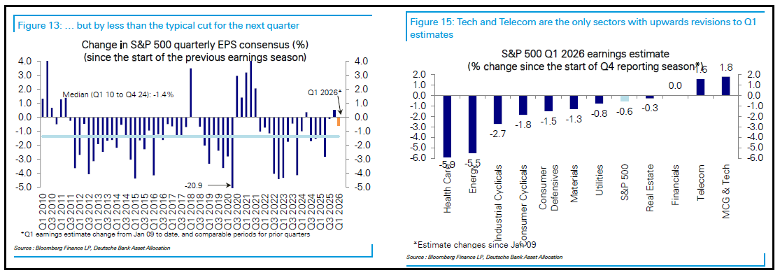 Posto che una correzione del 4-6% può avvenire sempre, per qualsiasi motivo, anche solo il positioning, io continuo a dire che al momento questa situazione di earning season non è compatibile con un top del mercato. Non ci resta che seguire attentamente l’andamento dei preannouncements per Q1 2026, scandagliando per segnali che annuncino uno stallo degli utili.
