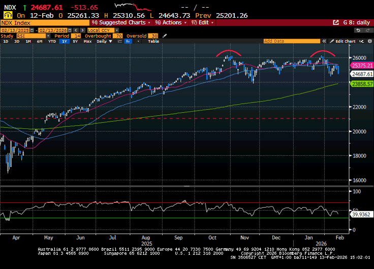 Ovviamente, ogni volta che il mercato scopre una nuova vittima, si innescano nuovamente le vendite su tutti gli altri settori recentemente colpiti, nonchè sugli hyperscalers che da tempo sono oggetto di dibattito riguardo la possibilità che i ritorni dei loro enormi investimenti possano deludere. E’ quello che è successo ieri, e il peso dei settori coinvolti è finito per gravare sugli indici generali, che oltretutto non hanno potuto contare su dati o altri catalyst supportivi.