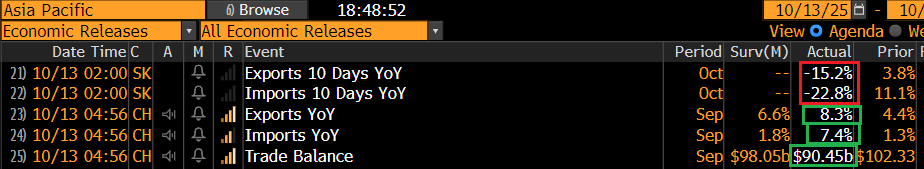 Sul fronte macro, male l’export sudcoreano nei primi 10 giorni di ottobre, ma credo sia un tema di giorni di lavoro in meno. Benone invece la bilancia commerciale cinese di settembre, che supera le stime si in export che in import, con il surplus che cala.