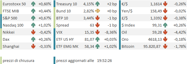 Le piazze europee hanno tenuto più o meno i progressi della mattina, chiudendo con solo CAC e Ibex in marginale calo, e nell’ordine Stoxx 600, Eurostoxx 50, e il FTSE Mib a fare i massimi (nell’ultimo caso dal 2000). Decisamente un inizio 2026 scintillante. Come accennato sopra i bonds EU non si sono giovati del ripiegare delle commodities e del petrolio in primis, frenati dal salire dei rendimenti in UK, e in US anche. Il Dollaro di avvantaggia un po’ del rimbalzo dei rendimenti treasury, mentre le commodities correggono guidate da oil e metalli preziosi, che però hanno ridotto di parecchio i cali mostrati stanotte e stamattina.